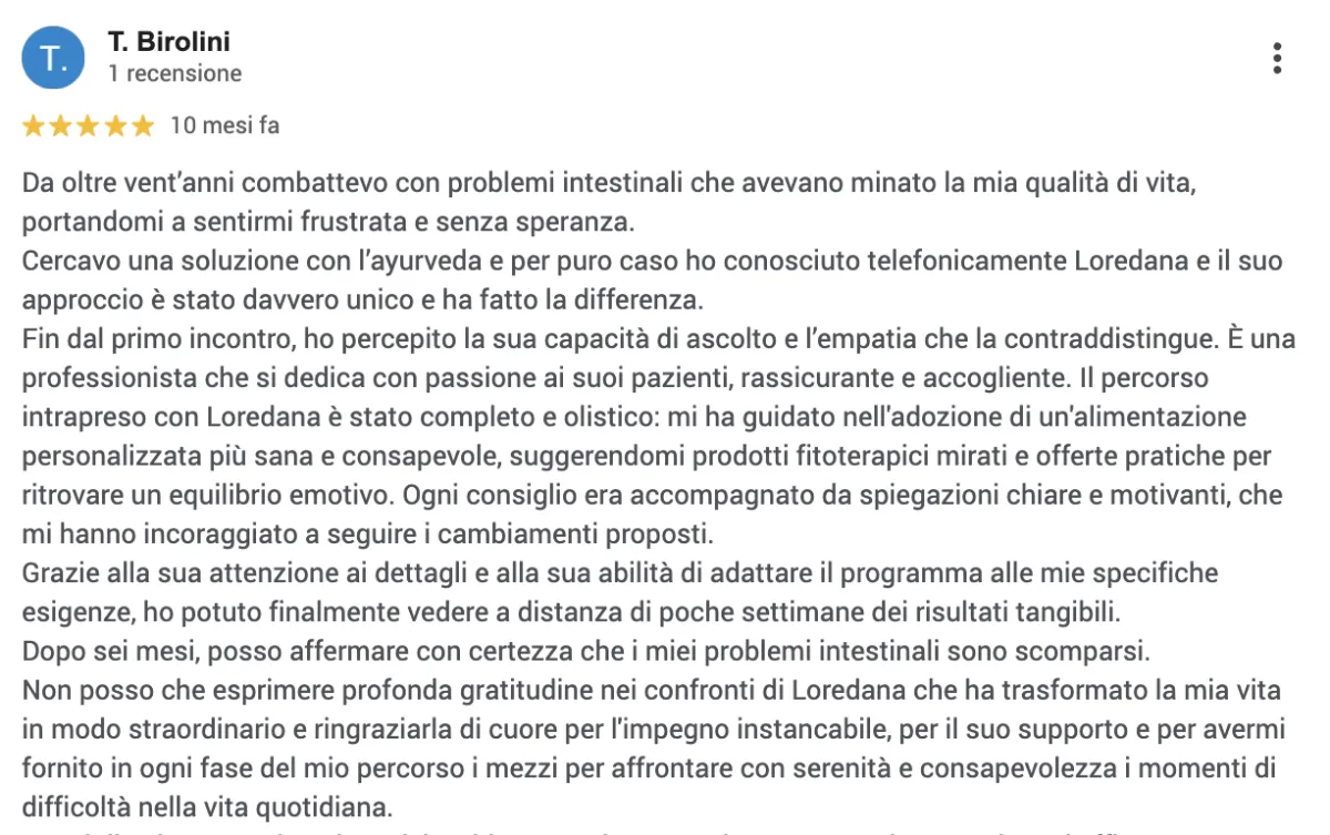 Collaborazione con medici ayurvedici per formulazioni erboristiche su misura, da seguire fino a 3 mesi.